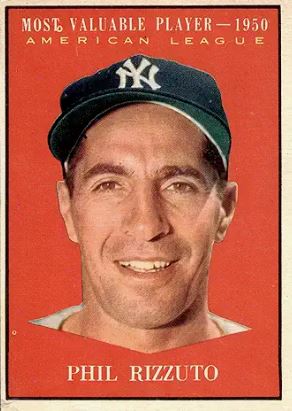 | 1961 | Topps | | 471 | Phil Rizzuto | player cards | New York Yankees | | Most Valuable Players - 1959 | Closeup | Most Valuable Player |