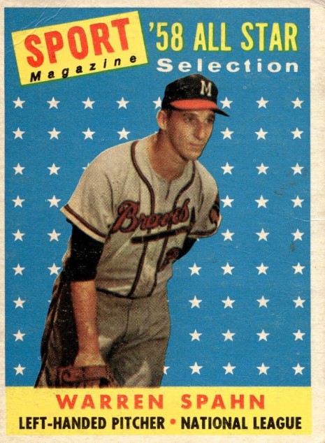 | 1958 | Topps | 494 | Warren Spahn | player cards | Milwaukee Braves | left-handed pitcher | NL All-Star | Candid - Pitching | All-Star,Sport Magazine,Cutout | ||||||||||||||||||||||||||||||||||||||||||||||||||||||||||||