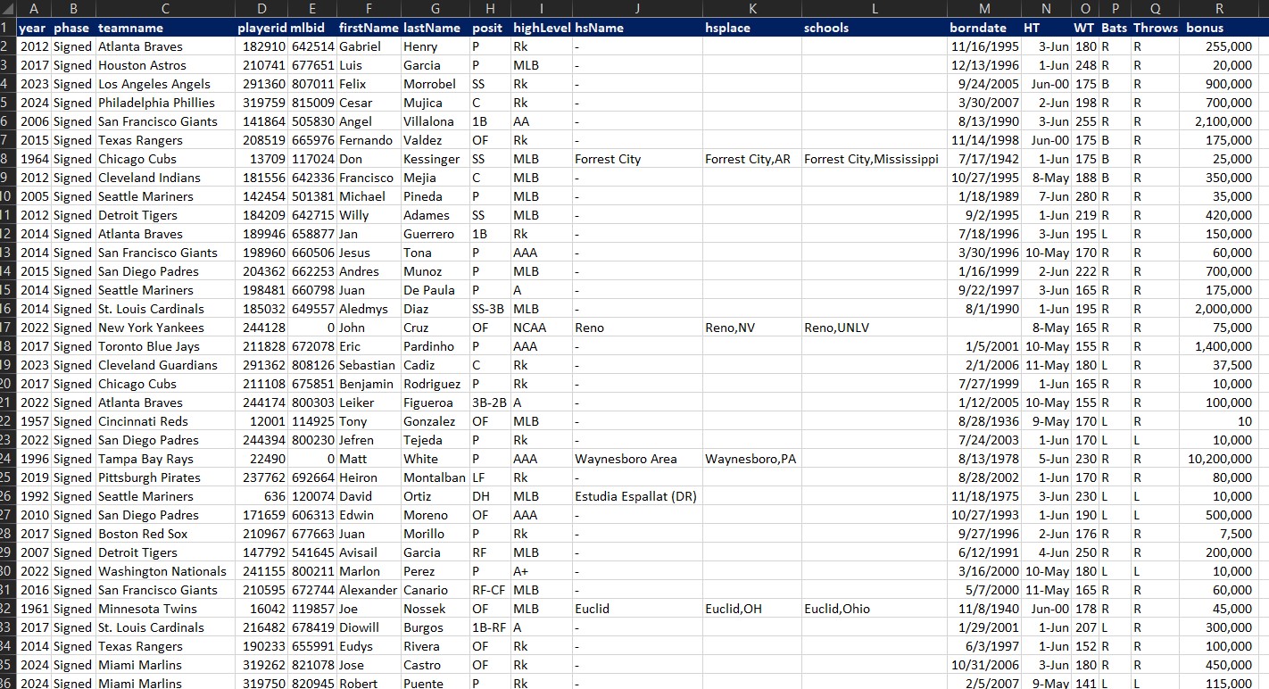 Reports Included [1]: MLB UDFA Signing Bonus Listing